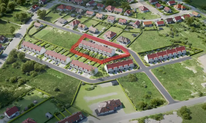 8 jednolokalowych segmentów o powierzchni 134 m² każdy. Domy posiadają garaż w bryle budynku i dużą działkę (min. 230m²). Planowane zakończenie budowy: wrzesień 2026.